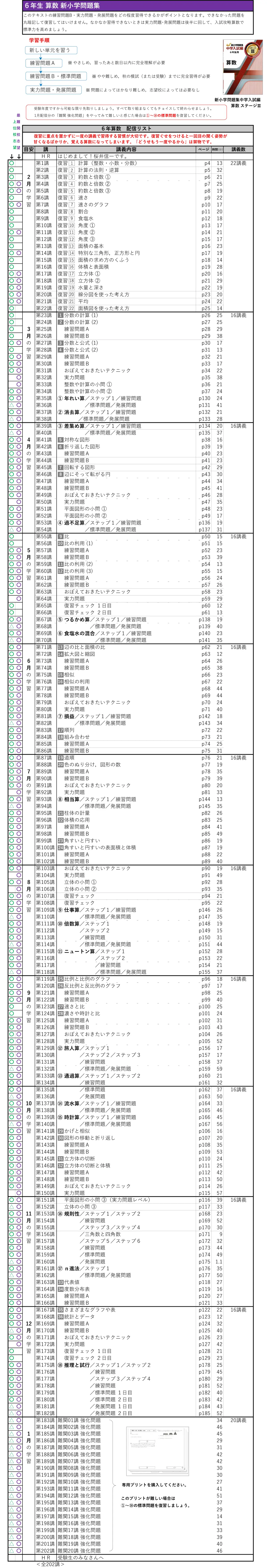 6年四谷大塚 算数カリキュラム